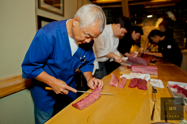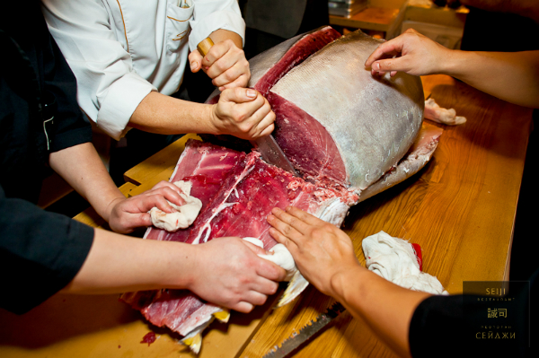 фотосессииНеделя прошла под знаком кулинарии. У меня есть такой специальный Бог, который исполняет все мои кулинарные пожелания, но фотографировать всю эту красоту я не успеваю – слишком аппетитно пахнет)))). Зато сбылась моя мечта – поснимать шеф-поваров за работой. Сначала меня пригласили на праздник с веселым названием «День тунца». Японский шеф Сейджи-сан расправился с огромным тунцом и угощал гостей деликатесами.