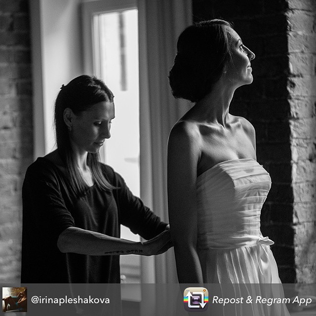 Анонс субботней свадьбы. Две прекрасные девушки в кадре: невеста Марина и визажист Ирина @irinapleshakova завершает шнуровку платья! А вы подумали о том, кто поможет надеть вам платье? #сборыневесты #утроневесты