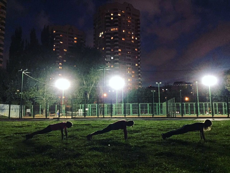 Планка в ночи, а вы думали я только бегаю ? Наш тренер из @runbasecamp умеет не только гонять кругами нас по треку, но и заставляет делать всякие смешные упражнения: подскоки радости, игра в наездников и обязательное "отожмись как мужик", а планка всего лишь вишенка на торте 😂 моя согбенная сама левая фигурка, когда нибудь я стану фитоняшкой и заполоню ленту друзей своими #селфи , а пока ловите мой силуэт в контровом свете. #фотографвкадре #баеваумница #шустраячерепашкасаша