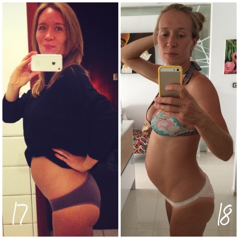 Токсикоз вроде как отпустил, иногда лишь немного мутит, скорее от жары и усталости. В этот раз все было совсем иначе, хоть и начался мой токсикоз тоже на 8 неделе, как и в первую беременность. С Максимом у меня была сильнейшая реакция на все запахи парфюмерии, просто сплошная "вонь" была повсюду, на картон, сырой лук и многое другое, плюс до 16 недели раза три в день стандартно тошнило. А сейчас меня мутило 24 часа в сутки, несколько недель тошнила по утрам водой, на запахи почти никакой реакции и мир ничем не "вонял". Но вот эта вечная мутиловка отнимала все силы, уж лучше бы тошнило почаще, но не мутило. Новостей особо никаких, сын готовится стать старшим братом, стал иногда целовать животик, но я его сильно заранее готовила ко второму малышу. Несколько раз ходил со мной на консультацию, ревностно относится, когда акушерка пытается послушать сердечко малыша или измерить мне давление. Ниже фото на 17 неделе в первую беременность и конец 18 недели сейчас. Хоть мне и кажется, что живот в этот раз огромный, по фото так все прилично!