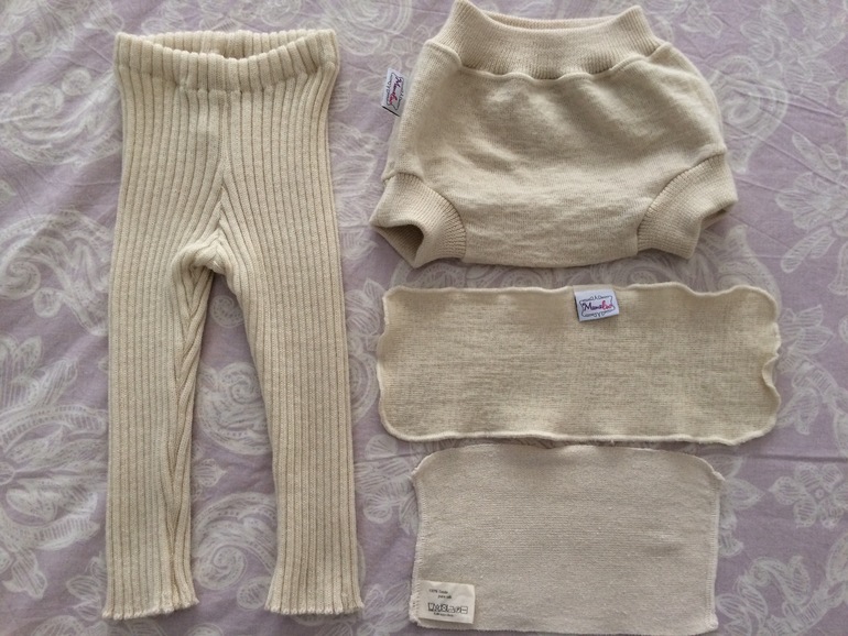 Шерстяные пеленальные рейтузы Наппи и шерстяные 2-х слойные штанишки Fresh Mamalino тоже в итоге постирала и проланолинила немного Пуреланом. Вкладыш из шерсти и шелка просто простирала.