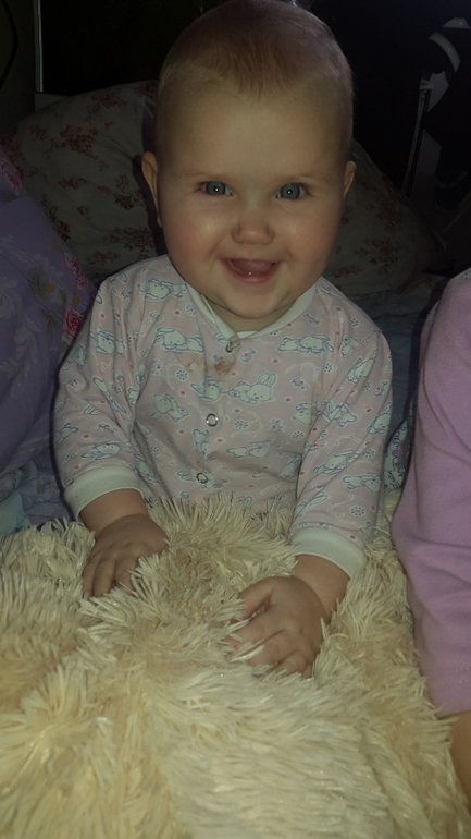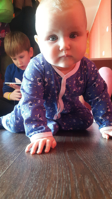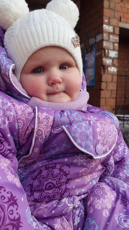 А тем временем малявке уже девятый месяц. Мы на ГВ, ну и прикорм. Ест суп, все пюре по взрасту. любит кашки. С трубочки пока не пьет. Тасюля уже умела. Как ни крути, я понимаю. что все дети разные, но невольно их сравниваю. Аня конечно у нас самая ленивая на умелки. Сама еще не встала, старшие уже стояли, Платон так уже ходил с важным видом во всю у опоры.Ну оно и понятно, третий ребенок, мало времени на занятия и развивашки. Сын на будущий год идет в школу, подготовка, логопед, Тасюля ну она без логопеда звезда ))), болтушка сто раз на дню от нее слышу Мама, Мамуля, Мам... Вобщем Анюта уже ползает, сидит, пытается встать. Ползает как раненый боец, волочет одну ногу за собой, ортопед сказал все ОК. Встает но не сообразит что надо держаться и падает. У нее 3 зуба, активно лезет 4 уже набух 2 недели, но все не прорежется. Настораживает что она совсем не повторяет слоги. Нету у нее не мамамама не бабабаба, за это очень переживаю.