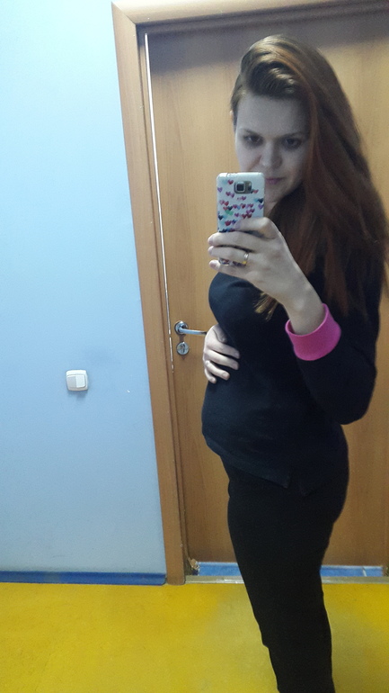 Вот такой вот маленький пуз. В прошлый раз был больше. Прибавка пока 0. Токсикоз прошел, но и жор еще не напал 😂