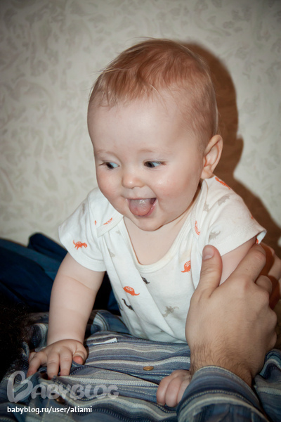 А еще Лёва любит бросать игрушки. Когда стоит на корточках на полу - подносит игрушку к самому уху - типа размахивается, - потом резко опускает руку с игрушкой, и у самого пола игрушку выпускает из руки. А бывает, что и не выпускает :)