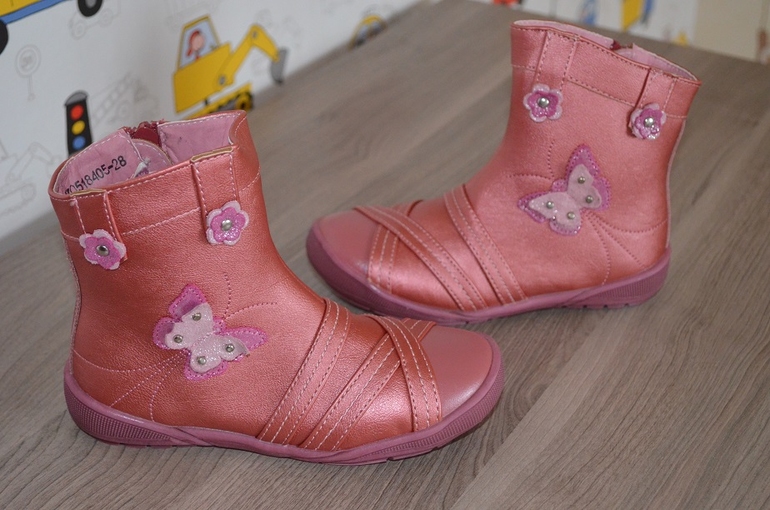96. Ботинки для девочкиНа двух липучках, без молнии, на любую ножку, внутри плотный текстиль, замеры по стельке, стелька вынимается, с супинатором, верх кожа,не замша.