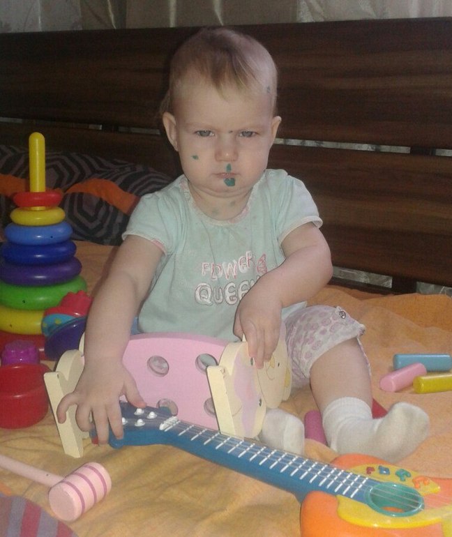 Теперь про умелки - с лёту слазит и залазит на диван, ползать стала как Маугли - на вытянутых ногах. А за пару дней до дня рождения сделала первые шаги. Первый раз показала папе, потом маме, потом мама попыталась снять видео и дочь прекрасно продемонстрировала новый навык, но так как у мамы руки растут не из того места, то видео не получилось. После первых шагов дня три нам ничего не демонстрировала, а потом начала потихоньку расхаживаться. Но не слишком охотно. Успеем)