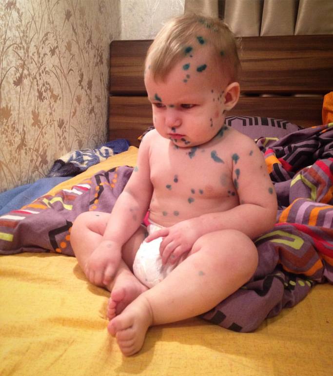 Ветрянку Зоя переносит тяжело - высыпаний я бы не сказала, что много, но очень сильный зуд и высокая температура. В субботу я бегала в поликлинику, благо что дежурила наша бывшая участковая врач. Назначила пить ацикловир. Кроме ацикловира пьем супрастин. В качестве жаропонижающего - цефекон в попу и нурофен в сиропе одновременно, иначе не помогает. Две ночи температура поднималась выше 39 и не сбивалась обычными методами, пришлось колоть литичку. Изза зуда Зоя все время в штанах и бодике с длинным рукавом, чтобы не раздирала. Дома довольно жарко, постоянно проветриваю. Но дерет все равно - шею, лицо, голову. Хорошо, что на ней памперс, иначе бы и там все разодрала. А там - самый треш. Все усыпано прыщиками, я аж слез вчера не сдержала.