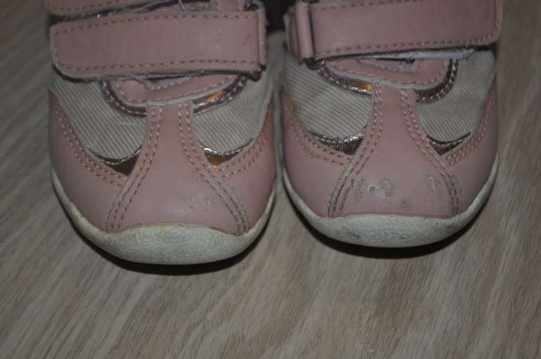 5)Кроссовки, кожанные, мягкие, красивые, но сбиты носки, р-р 24, отдам за 300 руб