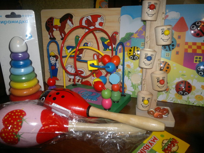 И мы с игрушками от Алины! Все понравилось. Это деревянные развивашки всякие для малыша нашего. Бочонки прикольные-сама играюсь. Единственное маракасы очень большие-тяжелые в руке у малыша не держится, надо было средние заказать. Теперь доча старшая с ними танцует хотя заказывались не ей!