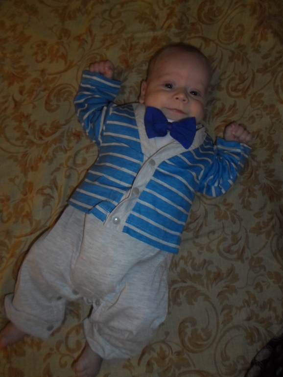 размер 4-6 мес) но думаю он на 4 прям))) потом будет маленький. а заказывали 0-3мес — так он до сих пор большеват)