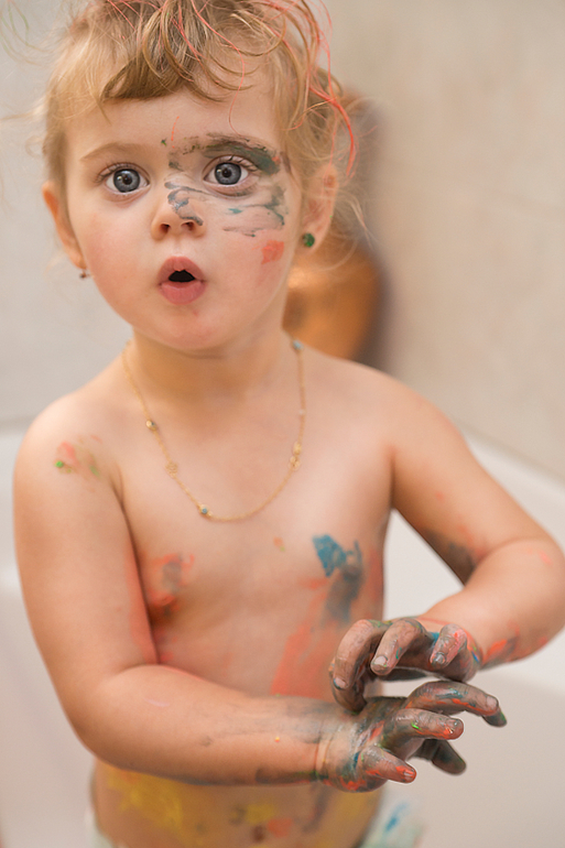 Любимым занятием стало наряжаться и обувать родительскую обувь, особенно мамины каблуки, так ловко на них ходит, даже вприпрыжку умудряется)). Еще любимое дело, это делать себе макияж; и маникюр фломастерами, пока ни кто не видит))) мастерство поражает))))))) бывали случаи, когда она воровала помаду у меня или гостей И красила себе губы. Один раз я вообще чуть не упала, оставила ее с фломастерами И побежала по делу личному, возвращаюсь, а она тыкает себе им в глаза - "веки красит"!!!!! Готова все пережить ради красоты. И кстати, что не оденет, бежит к зеркалу и любуется красавицей такой))). Смотрит, крутится и сама себе говорит : -Абадеть!