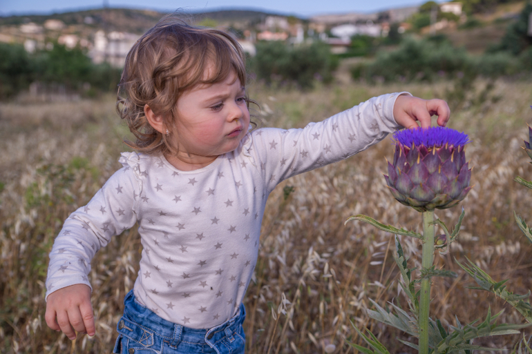 Пока болеем, нам не желательно контактировать с маленькими детками, и приходится гулять вокруг дома по полям, приключение очень интересное)))