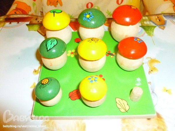 Обычно я это делаю утром часиков так в 10-11, начинаем с рассматривания картинок и угадывания животных, далее плавно переходим к собиранию и разбиранию пирамидки, к строительству кубиков)) только пока вот все больше рушим,чем строим))), начали недавно соотносить большие и маленькие предметы ( в данном случае, нам очень помогает грибная полянка) в первый ряд ставим большие грибочки на второй ряд маленькие,плюс моторику развиваем, внимание,восприятие цвета.