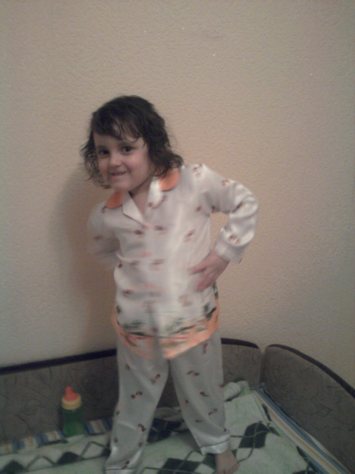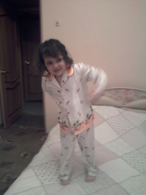 А эти - примерка новой пижамы перед сном, пижаму дедуля привез из Вьетнама.