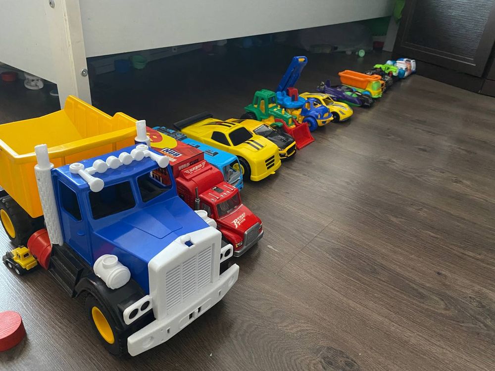 У меня у сына уже несколько месяцев любимая игра - выставить все мелкие машинки в виде парковки, группками, кучкой, потом скомандовать им "Поехали!", по одной перекатить в другое место и там опять составлять парковку. И так может по 2-3 раза перегонять их и составлять))