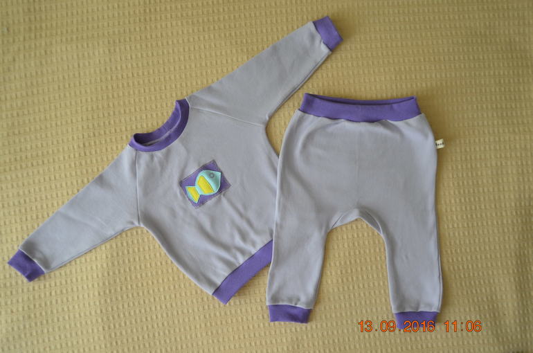 В комплект к брючкам пошилась такая кофта с аппликацией Рыбка. Костюм 74 размера в наличии.![]()