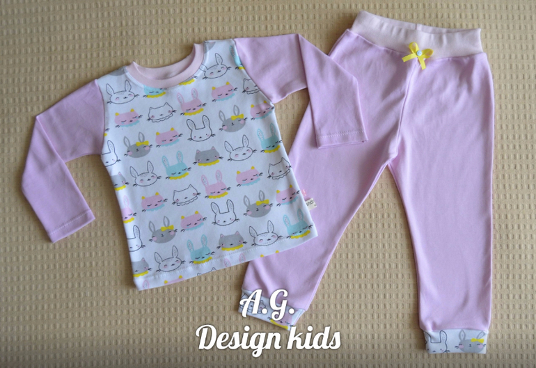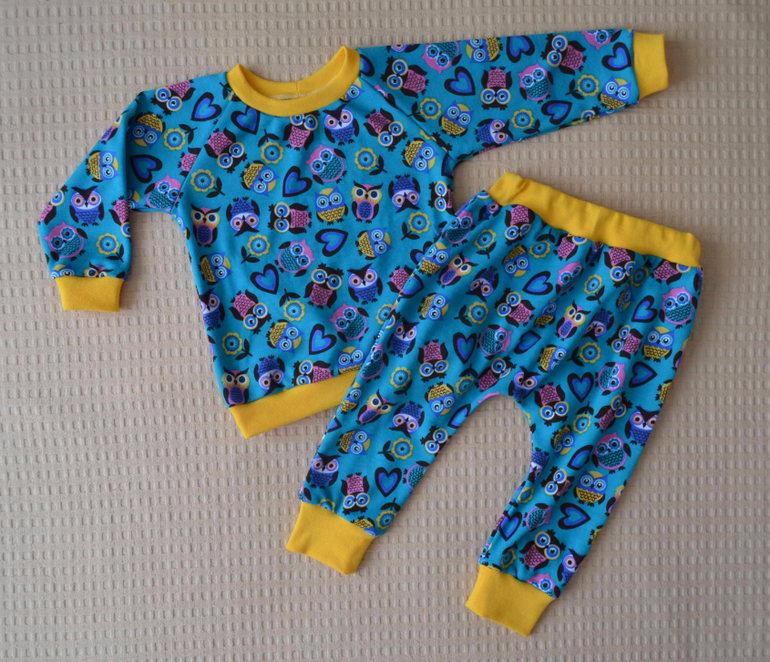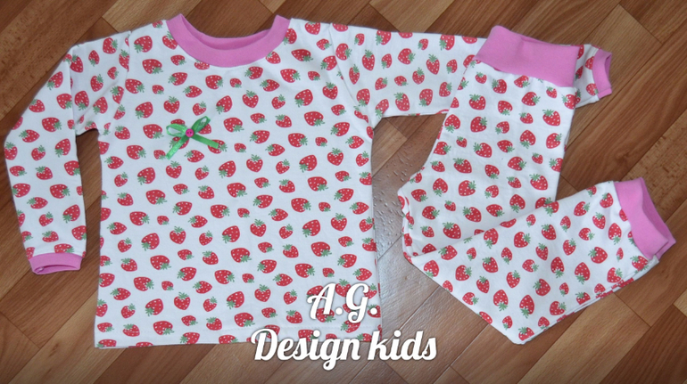 Пижамы для дочки, выкройка своя, рост 86, ткань-интерлок, на отделке рибана.