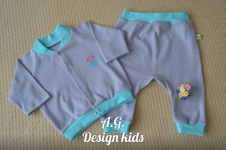 Недавно закончила пошив комплекта для одной крошечной девчушки, которой на днях исполнился месяц. Надеюсь осенью в этом костюмчике ей будет тепло и комфортно. Ткань - трикотажный хлопок. Размер 68.