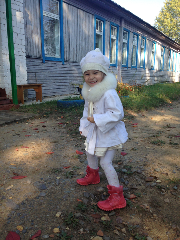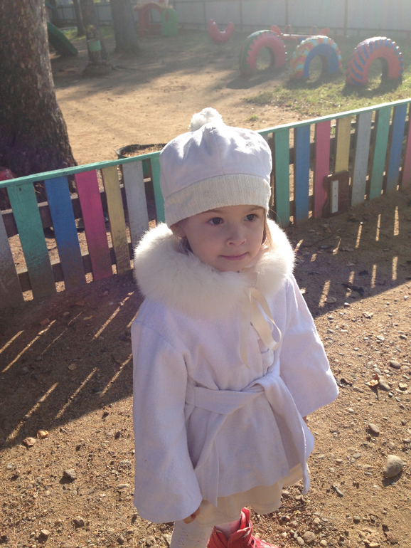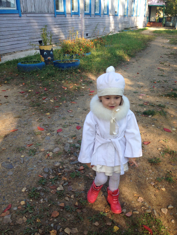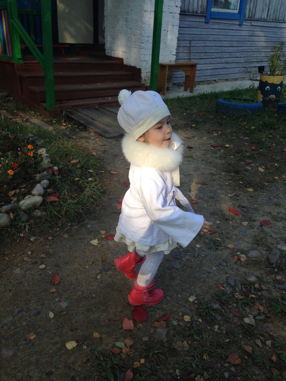 Алиске,наверное,просто не где марать,так как ходит везде за ручку с мамой.У Алинки в садике для прогулок сменная одежда.А в(из)сада на машине.