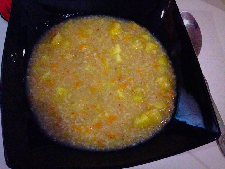 Мороженные я редко в магазине покупаю,там больше льда,чем овощей.У меня деревенская морковь,кабачки,тыква.капуста и свёкла. Алиска кабачки,вообще ни в каком виде не ест,только если в картофельное пюре добавлять.Из выпечки ежедневно едят только "Бородинский" или "Гречневый",из цельно зерновой у нас только раз в неделю привозят.Гречку не варю,а с вечера заливаю кипятком,укутываю в одеяло и утром уже готовую кашу развожу или молоком или куриным бульоном .