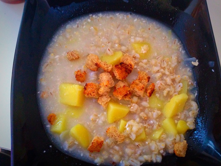 Овсянку замачиваю предварительно в кипятке.Про плов не задумывалась,но в больнице нам его давали на ужин(туда ещё тыква добавляется. именно для работы кишечника).А что лучше на ужин?