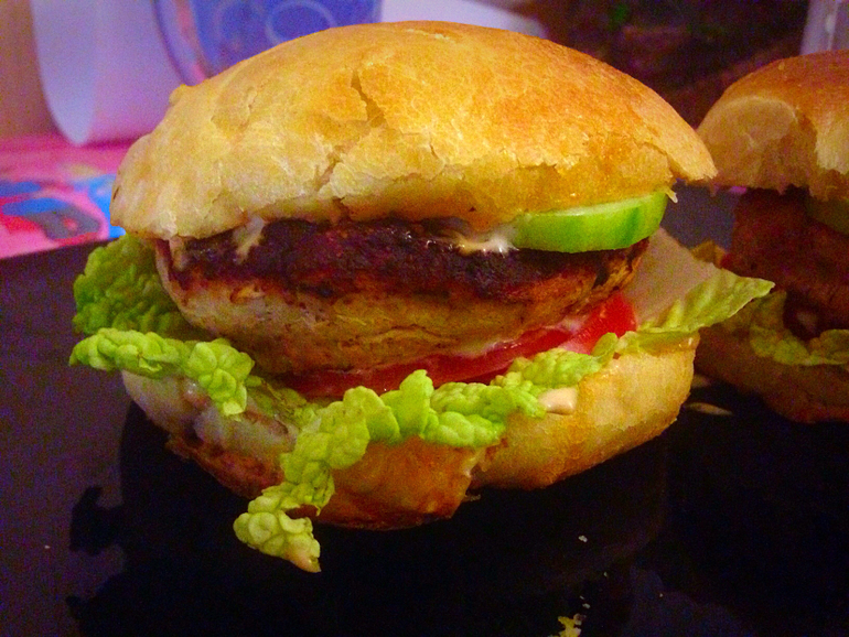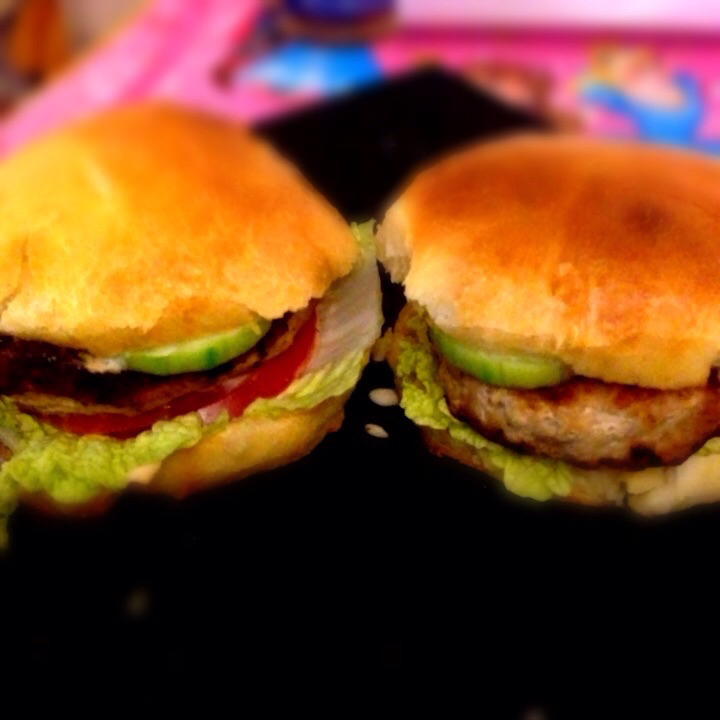 Приветик! Ну ни так уж это вредно. Самое вредное здесь-это дрожжи. Будочки из теста в панасонике(тесто Французкий хлеб3:35 мин), помидорки, салат, свежие огурцы, соус( майонез+томатная паста+перчик+чесночек под пресс ( на любителя)+котлета из свиного фарша( фарш, манка, крахмал, соль, перец, молоко, лук).