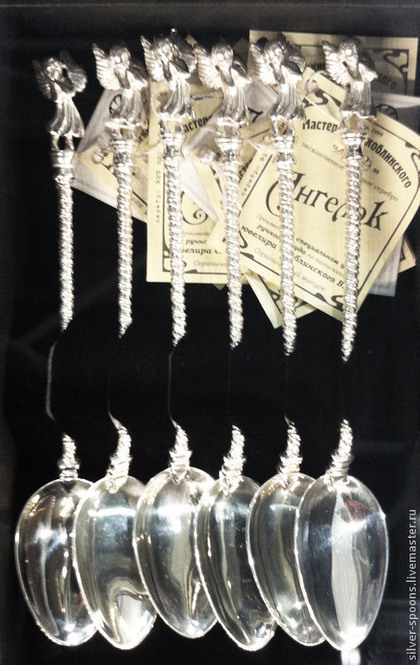 Вес каждой кофейной ложки "Ангелок" около 15,27 грВес набора из 6 серебряных кофейных ложек 925пр около 91,62 гр
