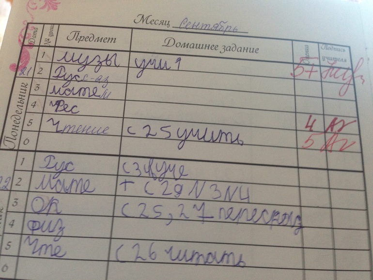 Почему так заполняется дневник? Оказывается, всё очень просто! Дети списывают с доски расписание с дз в конце учебного дня, время на это даётся мало, а Алиска медлительная, вот и торопится!