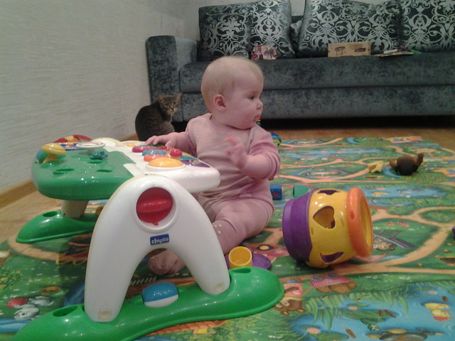 коврик в инете друзья заказывали, так что ссылку дать не могу, но он везде продается, это детский коврик юрим рулонный, стоит вроде 1200р. Кошка жутко пришибленная получилась:-) я про железновых слышала, но мы почему-то не слушали ни разу. Слушаем в основном классическую музыку и старые добрые детские песенки!