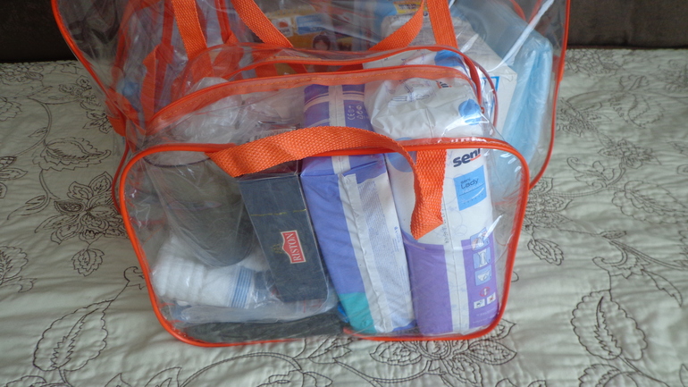 Исходя из личного опыта - решила купить специальную сумку, которая разрешена в роддом. С дочкой все распихивала по пакетам, мне было жутко с ними не удобно. Сумку заказала в интернете - пустую. Наполняла сама.