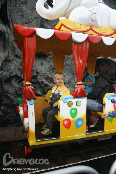 По детскому зоопарку не походили из-за дождя. Зато по ходу успели прокатиться на паре атракционов: