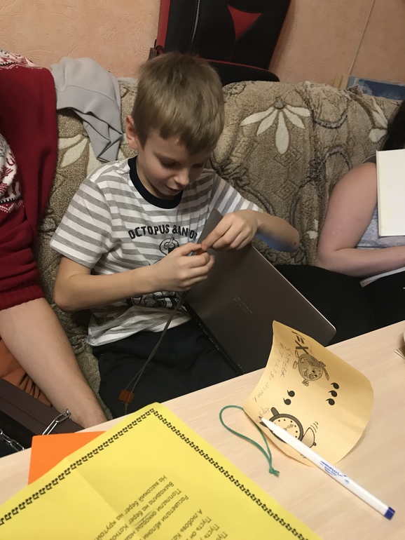 2. В микроволновке лежал воздушный шарик, внутри задание. Достать можно было только надув и лопнув шарик.