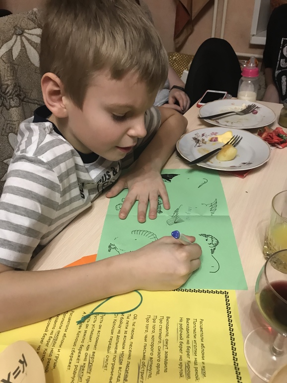 В вазе было задание с недорисованными животными. Надо угадать, что за животное и сложить первые буквы в указанном порядке - плита.
