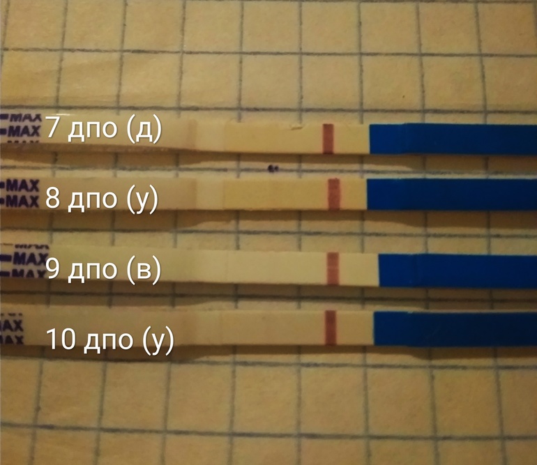 На 10 ДПО я сделала рано утром очередной тест. Результат не огорчил, но и не порадовал: такая же полоска, как и два дня назад, без динамики.