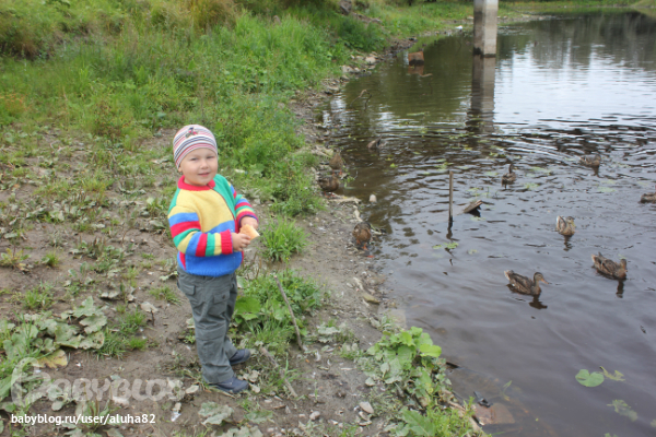Чтобы немножко пднять себе настроение, решила я со Славенышем пойти в парк покормить уточек и голубей. Славеныш любит этим заниматься. С таким усердием Славеныш булочку кидал, что порой я думала, что он сам полетит в воду вместе с этой булочкой. Он так сильно радовался, так хохотал. И я прям глядя на все это тоже начала смеяться. Уж так смешно было. Утки ттакие прикольные и нас они совсем не боялись. Вылезали из воды и хватали булку почти с рук.