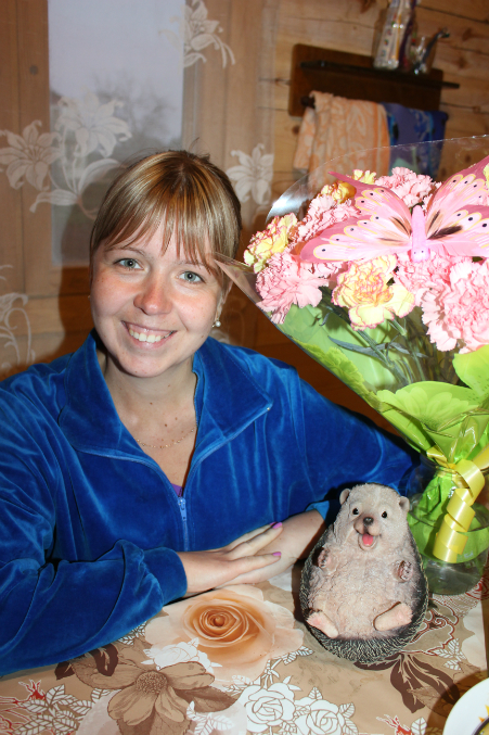 А привез он мне вот такой сюрприз: гвоздики (я ихочень люблю) и ежика. Сказал, что ежик очень на меня похож....