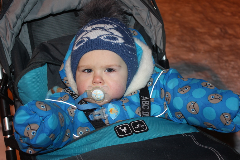 Коньки твердые такие, новые... Но потом как-то приноровилась и все пошло.. Темка сидел в коляске смотрел на нас и только улыбался..