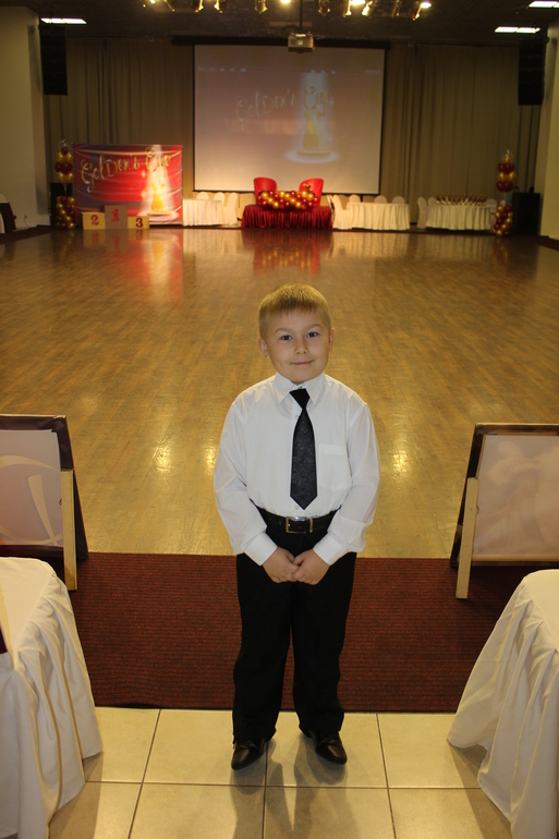 Было видно, что Слава переживает, хотя виду не показывал. Мы много тренировались дома по вечерам, плюс занятия в группе... И приехав сюда мы начали прогонять все еще раз... Сначала просто в сторонке, а когда включили музыку, то уже на паркете... Танцы у нас пока не сложные и я как стараюсь Славику помогаю, а вот как дальше будет... Он конечно немного растерялся и я увидела, что появился в страх.. Еще мы расстроились, что больше никого из нашей школы не было... Хотя собирались многие... Как результат.. я Славе сказала, чтобы если что смотрел на меня.. я помогу... у всех детей один и тот же танец танцевался по-разному... т.е. вроде движения есть одинаковые, но порядок разный и я переживала, что он просто начнет на кого-то смотреть и все пойдет не так...