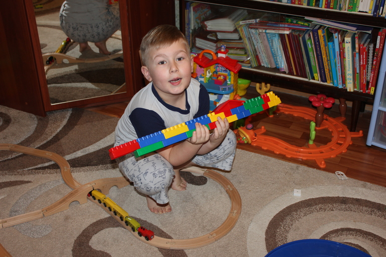 Игрушки... уххху-хууу! тут полный атас, они везде и всюду. НО.. у меня условие, каждый вечер все игрухи убираются. и вот самое интересное у Темика есть уже такое поиграл и убрал, а Слава так и старается увильнуть. Хотя у нас так было всегда, что все убираем,а потом все остальные дела ко сну...Мы любим паровозы... Темик наконец стал паровозики деревянные катать, а не просто ломать дорогу...