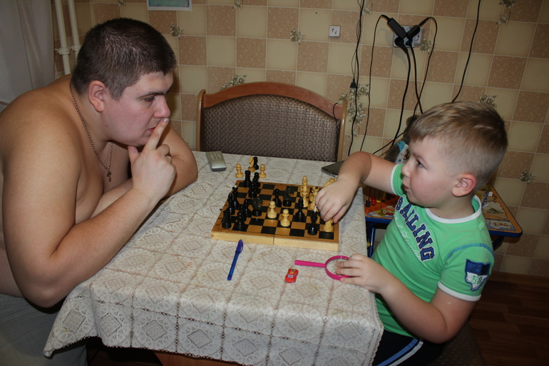 Славик заинтересовался шахматами. Играет с папой... жалко, что нечасто получается. папа пока с работы приходит, мальчишки часто уже спят. Но ему нравится и он просит поиграть с ним при первой возможности.