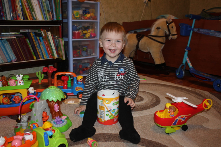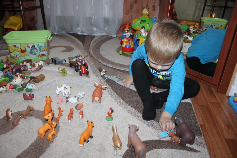 Наверное фотографий с Темиком у меня больше, но как-то и фотографировать его получается больше... У Славика все дни расписаны, а вечерами уже как-то не до фото... То танцы, то допы по ним, то подготовка к школе... Уже месяц как прибавилась еще и подготовка к школе при школе в которую мы все-таки попали. Поэтому работает мой мальчик на всю катушку. А Темик!!!! Темик ждет не дождется братика. И можно себе представить что творится когда Слава с папой входят в квартиру... Темка не знает кого обнимать, визжит, хохочет, на всех прыгает. А днем.... пока в сад не ходили или как сейчас не ходим из-за меня, мы играем.. Обожаем ферму... Игрушки эти из ящика кровати я переложила в контейнеры, так значительно удобнее. Вот так Темик с ними и таскается, уже и открывать сам научился. Хотя это тяжело.