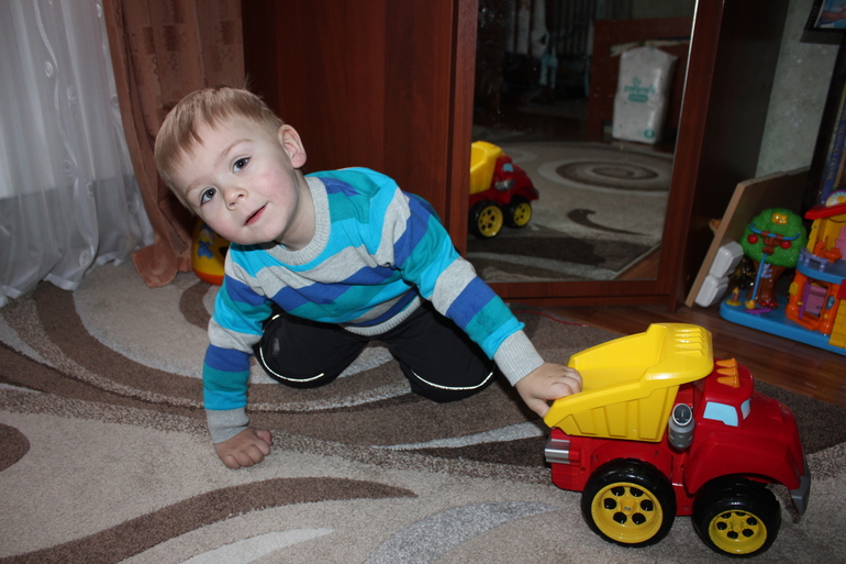 Темка любит с чаком играть, а вообще обожает трактора.. На улице мимо не пройдем нигде.