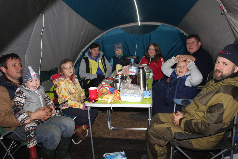 Ну, а вечером посиделки. Правда было принято от ветра спрятаться в одной из палаток. Мальчики наши даже свет нам провели, так что отдыхали в тепле и комфорте.
