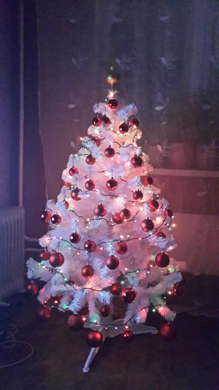 Ксению. Ксюша подарила нам очаровательную новогоднюю красавицу и убранство для неё. Так сказать "под ключ") Дети были просто в восторге! Собирали и наряжали всей семьёй. И вот что у нас получилось. Теперь в доме присутствует самое настоящее праздничное настроение!