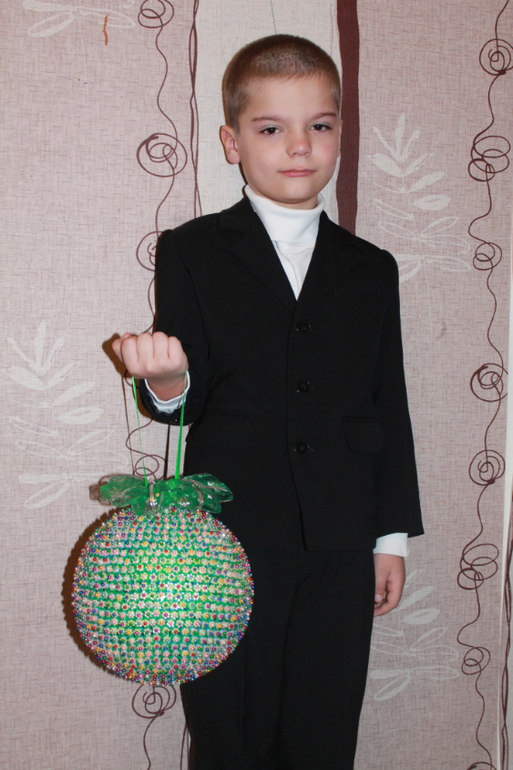 Этот шарик мы с сыночком делали неделю. Он собирал мне пайетки на булавочки, а я потом втыкала. Вот что у нас получилось. Розовый шарик они с Васёнкой делали почти самостоятельно. Кстати, экзамен на усидчивойсть сдан на 5)