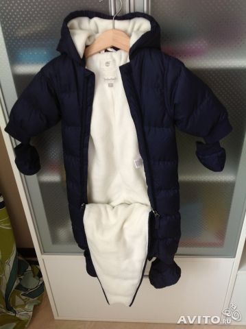 Оригинальный зимний комбинезон темно-синего цвета от Timberland, размер 9 месяцев-макс. рост 71 см. Можно носить до 74 см. Очень теплый. Фото в комментариях . Застегивается на две молнии, варежки и ботиночки из такого же материала пристегиваются на кнопках. Капюшон не отстегивается. Наполнитель полиэстер, подкладка х/б. Можно стирать в машинке! Ношен пару раз, куплен в Италии за 50 евро, состояние идеальное! Цена 1000 рублей, Самовывоз из г. Мытищи, либо встреча у метро Улица 1905 года, Комсомольская.