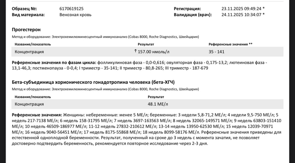 Что-то я очкую…. Хгч ждала чуть выше если честно, сдала за 3 дня до задержки, по тесту полоска яркая вроде была. Но ещё больше напугал повышенный прогестерон. Это ни есть хорошо как поняла. Завтра повтор анализа. Страшно ужасно. Хгч думала хотябы около 100 будет. Тк. Тесты полосатить начали за 6 дней до задержки.