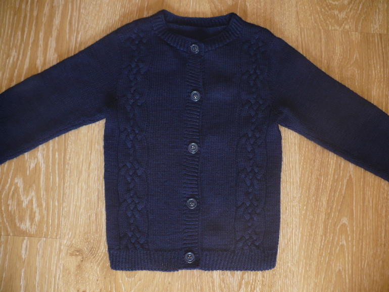 Дочь моя любит ходить в школу в блузках с коротким рукавом. Говорит, что в классе жарко, да и писать удобнее. А зимой-то холодно! Вот и связала я ей такую кофточку в цвет школьной формы. Очень хорошо смотрится!