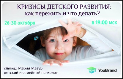 С 26 по 30 октября в рамках глобального обучающего центра YouBrand стартует коучинг "КРИЗИСЫ ДЕТСКОГО РАЗВИТИЯ"