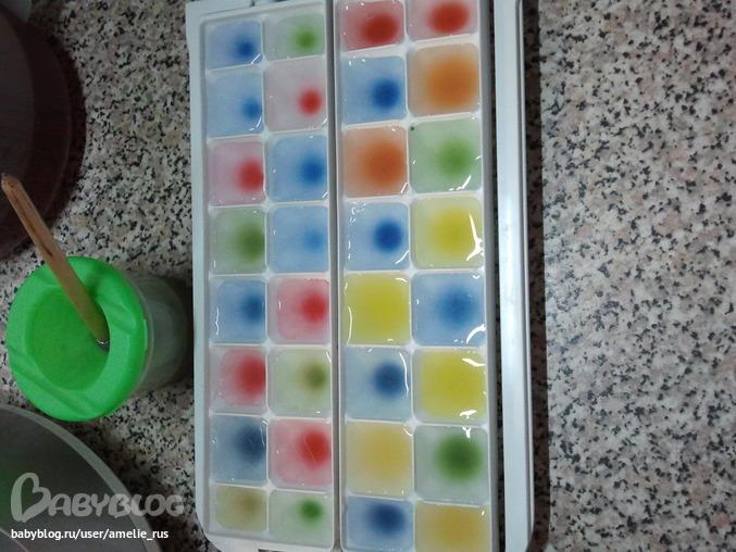 а мы наморозили цветного льда и с гречкой поиграли)))